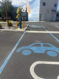 Vehicles towing a smaller trailer, may be able to park with trailer attached if careful, as there are 2 end to end EV parking bays.